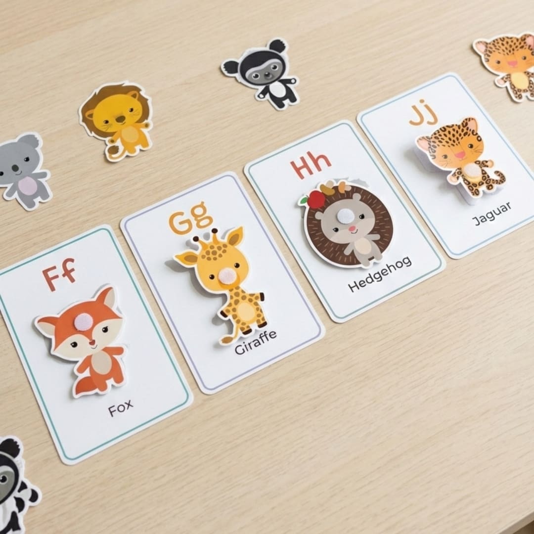 • Print the alphabet cards and animal pieces on thick paper (200–250 gsm) if possible
