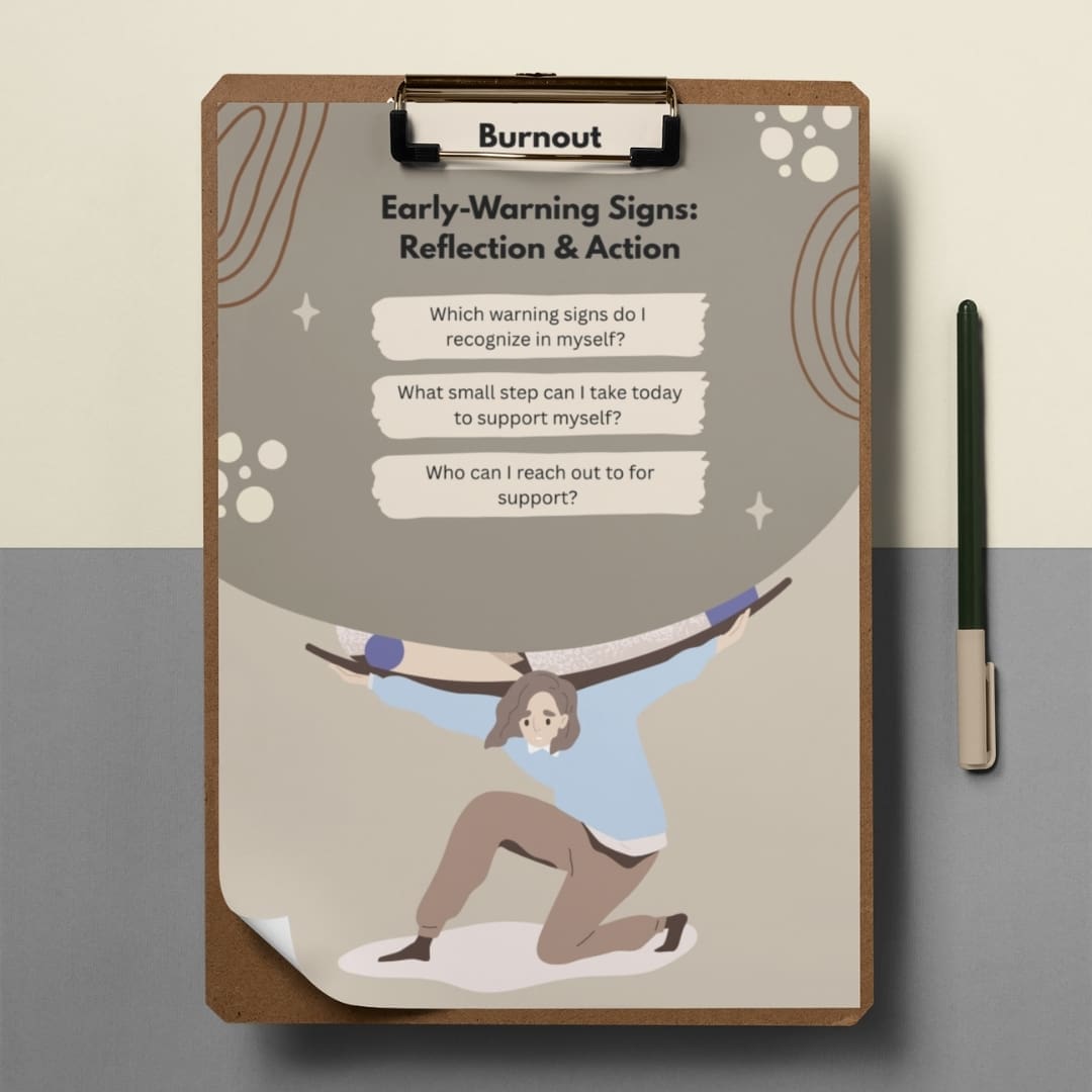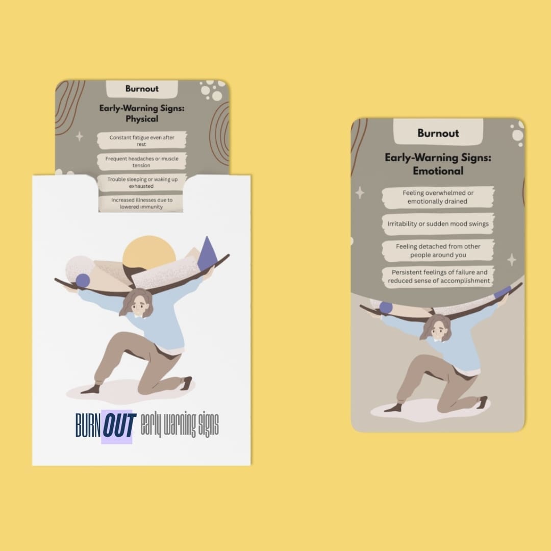 The Burnout Early Warning Signs A5 Printable is a beautifully designed, easy-to-read awareness tool that helps individuals, workplaces, educators, caregivers, and wellness practitioners recognize early signs of burnout before it becomes overwhelming.
