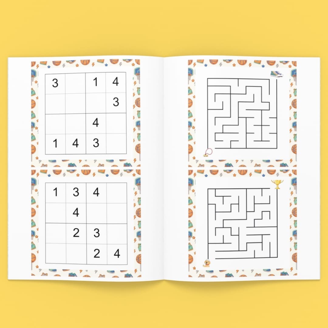 Turn learning into an exciting game with the Hoops Champion Challenge, a sports-themed puzzle booklet designed to keep kids engaged, focused, and learning, all while having fun!