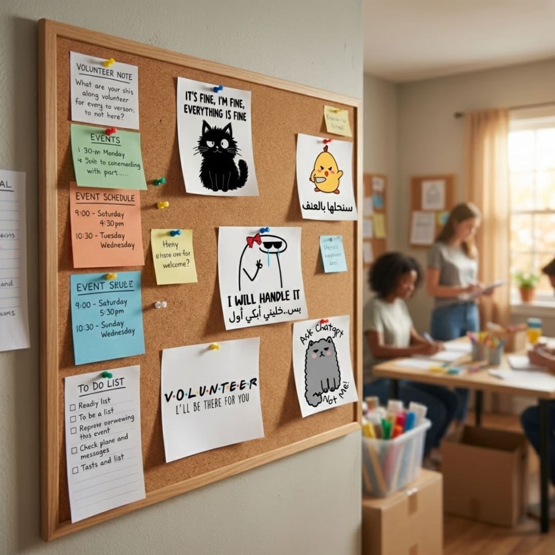 The Just Volunteers Sticker Collection includes 14 funny, sarcastic, and painfully relatable designs made especially for volunteers who give their time, energy, and sanity to every project. From chaotic event days to “Don’t panic” moments (while internally panicking), these stickers capture the real volunteer life, unfiltered and hilarious.