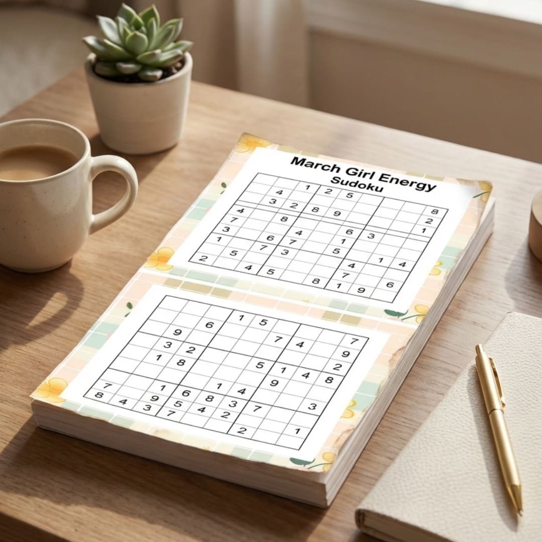 This Sudoku set is part of the March Girl Energy Bundle. Challenge your mind with this printable booklet that combines aesthetic softness with brain-boosting challenge, making it perfect for those who love puzzles and mindful moments.