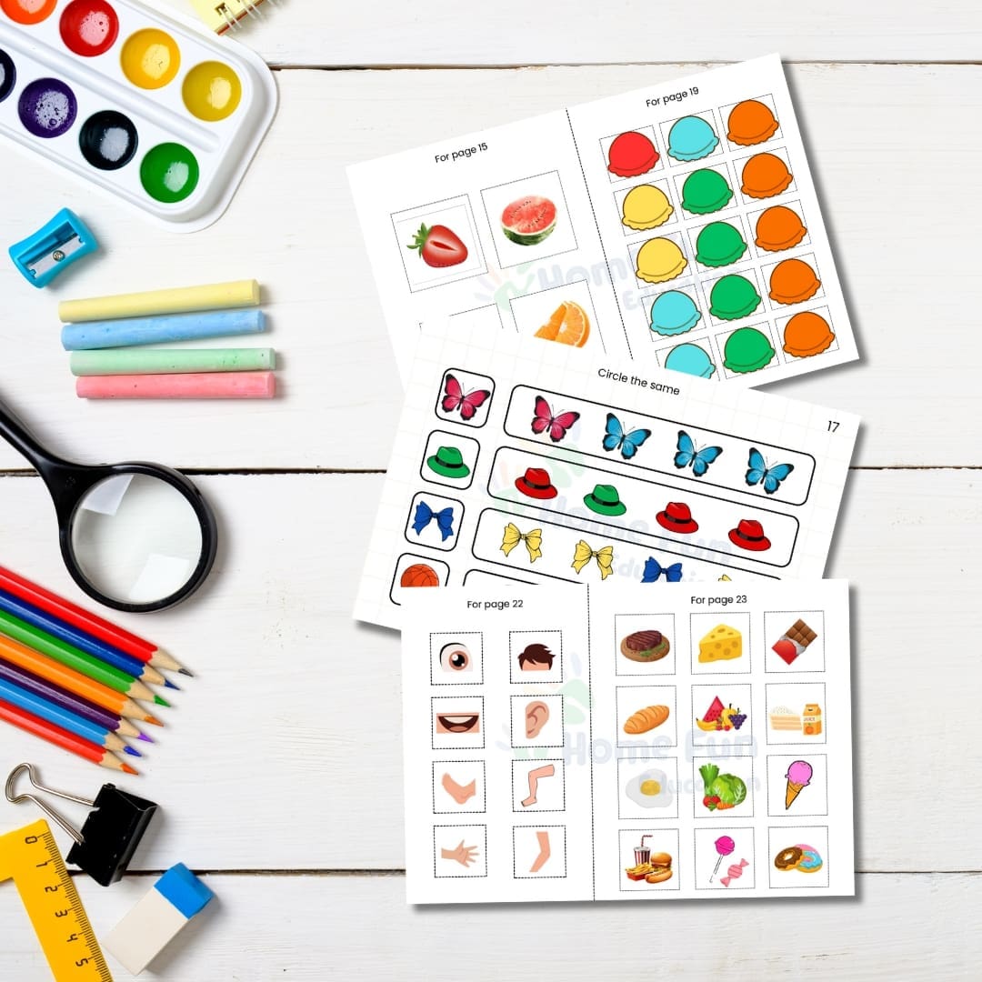 • Additional cut-out materials are included at the end for matching, sorting, and pasting