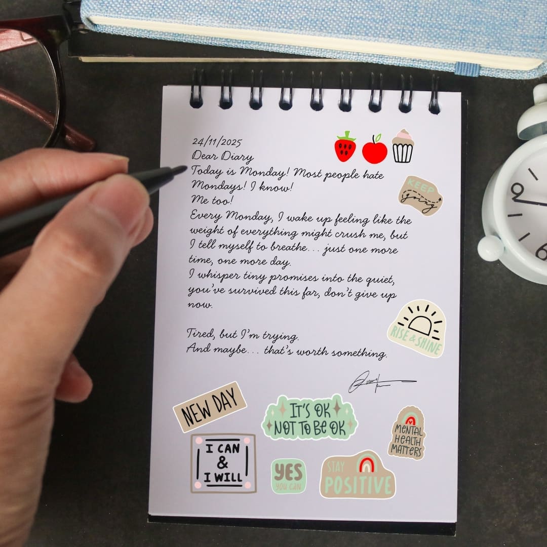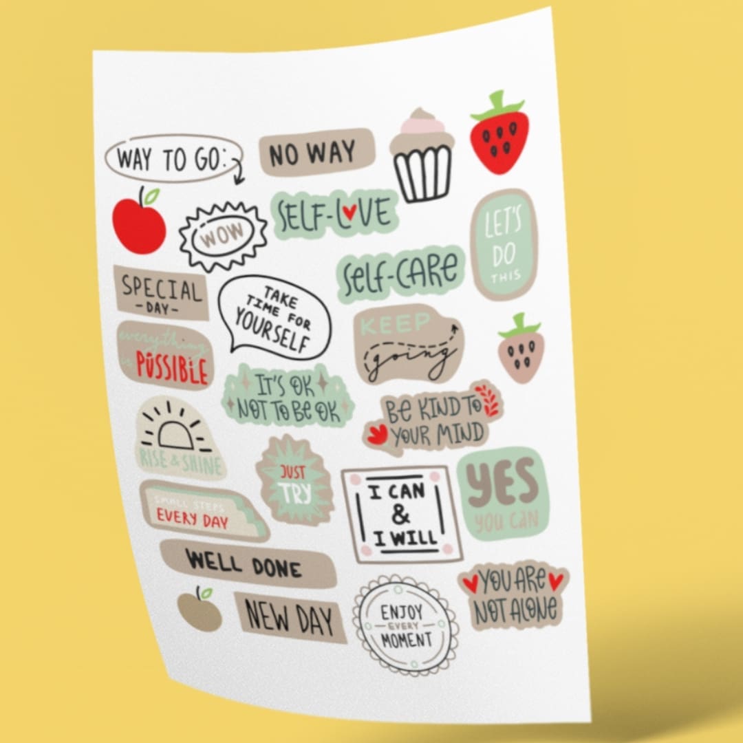 From comforting quotes like “You Are Not Alone,” “Mental Health Matters,” and “Keep Going” to cute icons like fruit doodles and motivational bubbles, this collection adds joy, color, and emotional warmth to journals, planners, gifts, and personal projects.