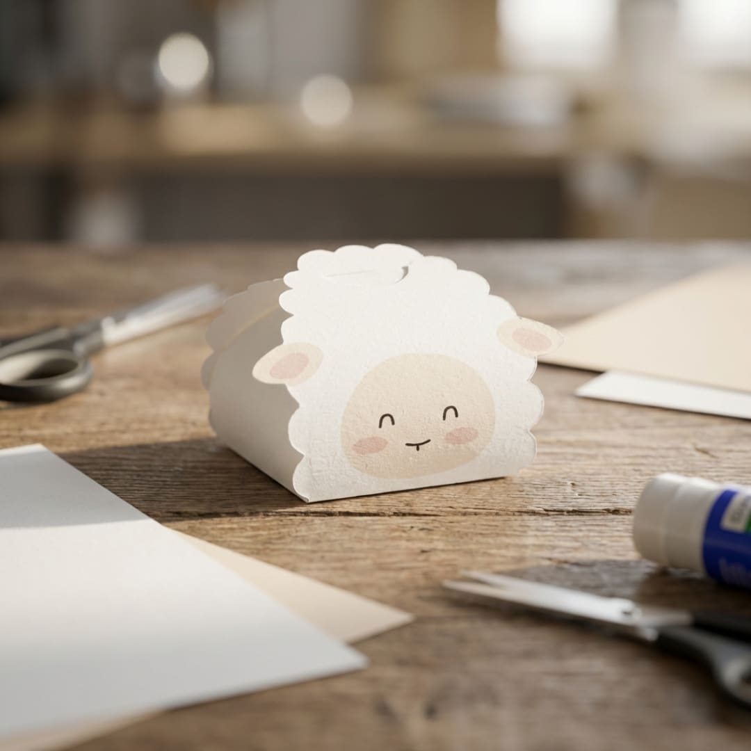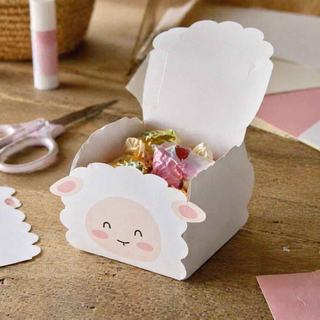 This is a Printable DIY Template (6 x 6 cm). It is an adorable sheep-themed printable box. Perfect for small surprises, party favors, or handmade packaging, this design brings a warm, playful feel to any occasion.